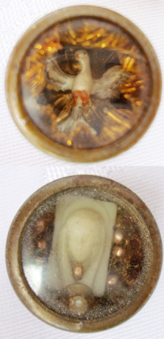 Metallkapsel mit kleiner Klosterarbeit. Größe ca. 1,5 cm.
