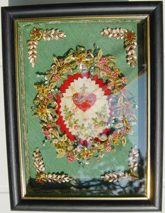 Heiliges Herz mit Miniatur-Wickelblumen.