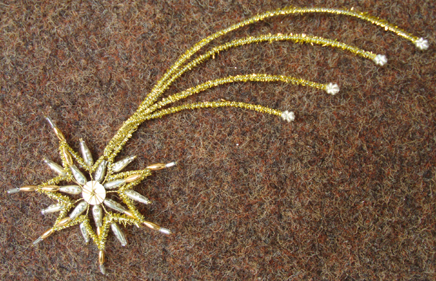 Goldtinsel- und Perlenarbeit.